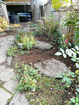 This post covers a Leslieville backyard garden being cleaned up a little recently. I won't use the word "winterize" as I've seen other landscaping companies describe their philosophy about working in gardens at this time of the year by using this term. That word in quotes suggests something you do to a car or furnace or some other inanimate object, certainly not to a garden.